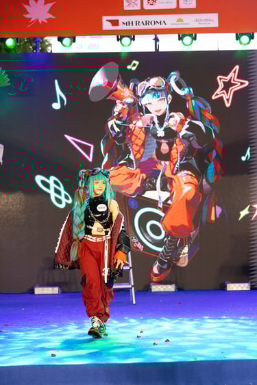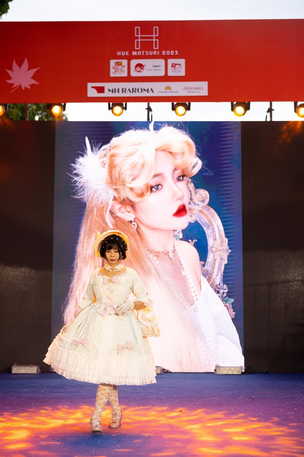 A major highlight of HUE MATSURI 2023 was MANGANIAC NIGHT, featuring performances by both Vietnamese and Japanese artists: Pile (Japan), singer-songwriter Thai Trinh (Vietnam), singer Lena (Vietnam), and Redlight Band (Vietnam). Students from Quoc Hoc Hue High School and Hue University of Foreign Languages also energized the event with performances rivaling those of professional artists. These talented students showcased the beauty of Vietnamese culture through various performances, including dance, singing, and traditional musical instrument displays. Their enthusiasm for cultural exchange was further expressed through elaborate and impressive cosplay activities.