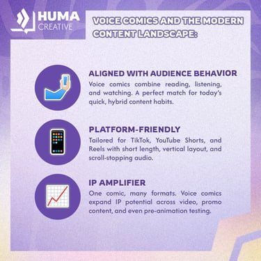 Modern audiences, especially Gen Z and Gen Alpha, naturally gravitate toward hybrid content formats. They want to read, listen, feel, and share stories quickly. With their short runtime, rich sound design, and emotional appeal, voice comics are perfectly aligned with current content consumption behaviors.