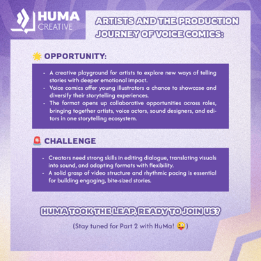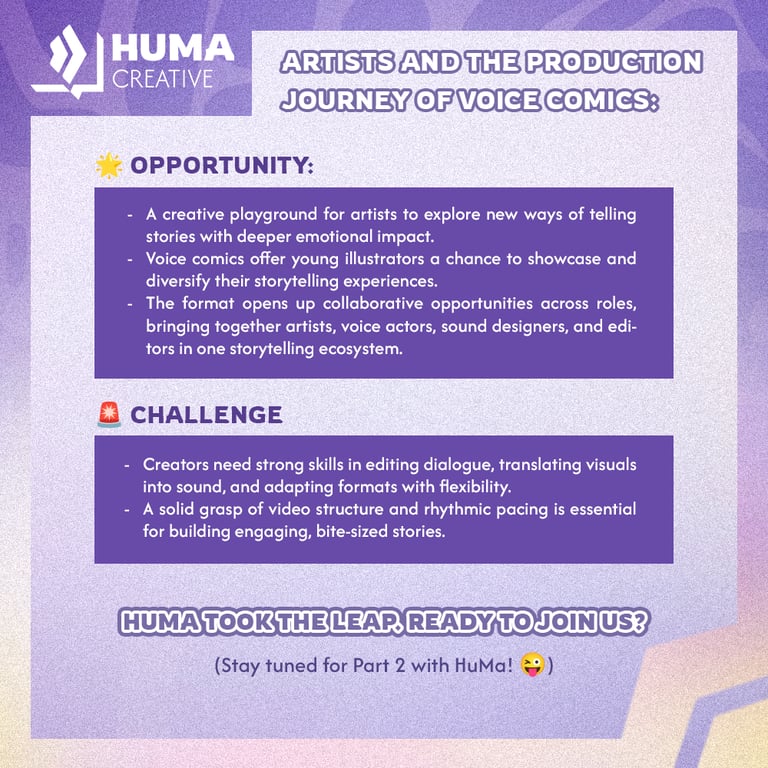 At HuMa Creative, we were once newcomers to this format too. But challenges don’t stop us. Through real client collaborations, we self-learned, adapted, and quickly gained hands-on experience in voice comic production.