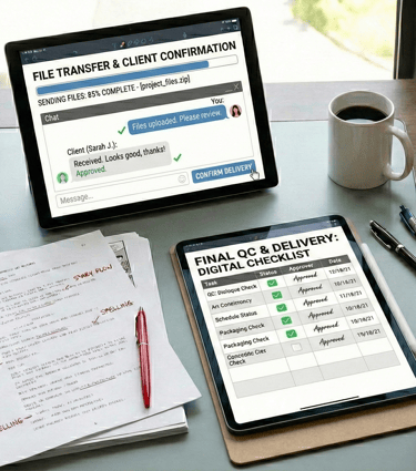 Final Check & Scheduled Delivery: Conducting final reviews and delivering episodes steadily according to the agreed schedule.